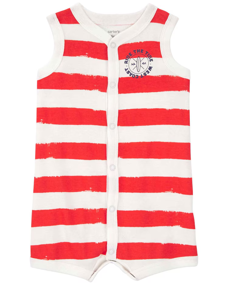 Perfeito para dias mais amenos e ideal para nós que amamos deixar nossos filhos ainda mais fofinhos, o Macaquinho bebê com listras multicor | Carter's surge na medida certa para seu baby. Feito de algodão, o macaquinho possui abotoamento entrepernas, modelo regata e conta com a estampa listrada. Ele ficará ainda mais lindinho. Aproveite!